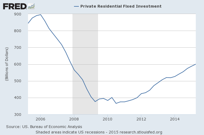 One of the best single metrics for tracking whether Home Depot has the wind at its back in the housing market is private residential fixed investment, which is a government statistic that shows the annual rate of spending on home improvement across the United States. That figure peaked in 2006 at $900 billion before plummeting to below $400 billion at the bottom of the crisis. The rebound has been marked by a steady improvement to the most recent $600 billion mark, which we haven't seen since 2007.
