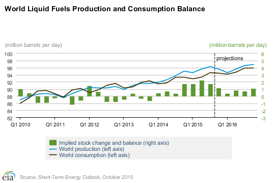 According to the U.S. Energy Information Administration, global oil markets were oversupplied by 1.8 million barrels per day in the third quarter of 2015. That's a result of a weaker-than-expected global economy, but really driven by the U.S. adding 2.5 million barrels per day of supply to the global market in the last two years alone.