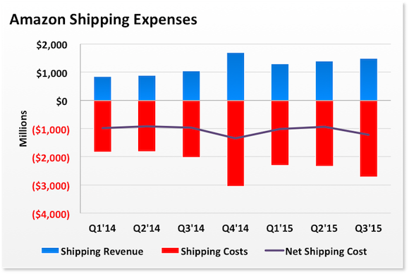 The FBA fees that relate to shipping are included in shipping revenue, as is a portion of Prime membership fees. For example, last quarter's shipping revenue was $1.5 billion, which wasn't quite enough to offset the $2.7 billion in shipping costs, which all net out to $1.2 billion in shipping expenses.