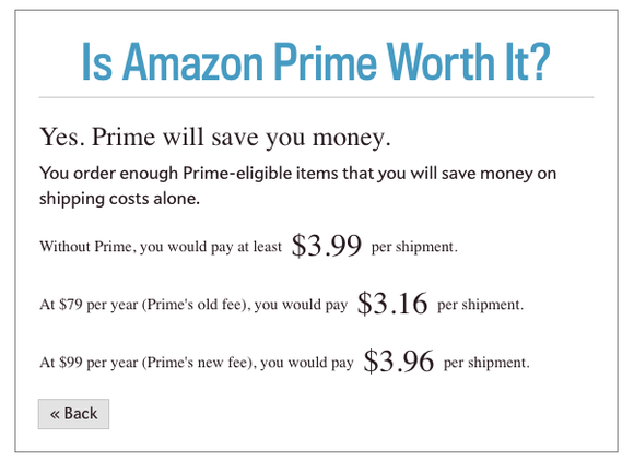 If the average, eligible delivery cost $3.99 for non-members, then simple math told you the break-even point is 25 deliveries. At that number of orders, a widget offered by Slate shows that if you paid $99 a year then each of your orders would cost $3.96. That would not have seen you wringing a lot of value out the service, but it still technically would have made sense to buy.