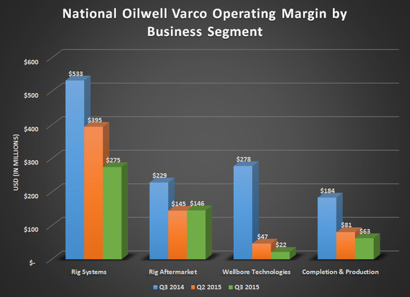 National Oilwell Varco's (NOV 2.69%) earnings results for the third quarter were yet another reminder to investors that we're in the worst decline in the oil and gas industry since the 1980s. While the company continues to cut costs to preserve some level of profitability, the decline in capital spending from oil and gas producers is impacting just about everything the company does.