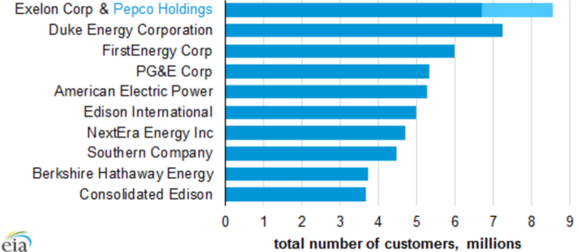 Last April, Exelon approached regulators with a proposition to purchase Pepco Holdings for $6.8 billion in cash. The merger would combine Exelon's 6.7 million customers with Pepco Holdings,'s 1.9 million, making it the largest utility (by customers) in the United States.