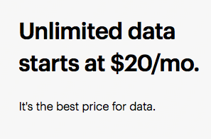 The promotion also further attempts to, if not mislead, at least misdirect consumers by not mentioning off the bat that the $20 plan is for data only. To actually activate a phone, subscribers will also need a voice and text plan, which costs another $20 each month.
