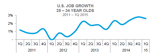 In addition, U.S. job growth has been accelerating, especially in the 25-34 age group, which has a particularly high percentage of renters.