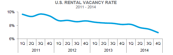 Finally, rental vacancies have been declining for years, and are at historically low levels, creating more demand.