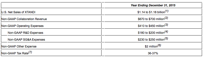 As a reminder, Medivation generates revenue from its partnership related to sales of Xtandi in three different ways: U.S. collaboration revenue, ex-U.S. collaboration revenue, and upfront and milestone payments.