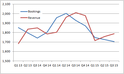 In addition, as the chart below demonstrates, bookings growth has been weak across all four segments in 2015.