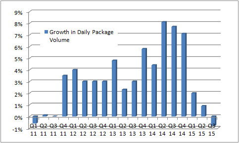 Part of the contraction in Ground volume in 2015 was due to the wide-scale implementation of dimensional-weight pricing -- where packages are priced based both on dimensions and weight rather than just weight -- but declining volumes are still a concern.