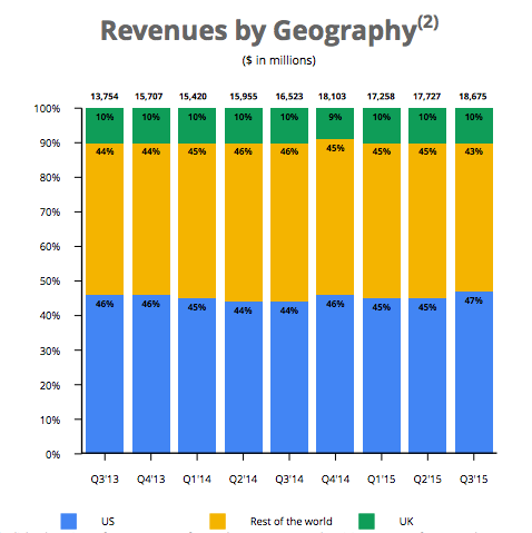 Still, it's hard not to get excited about the potential. Although India enjoys a prominent IT sector, only about 18% of its approximately 1.2 billion citizens have access to the Web, according to 2014 data from the World Bank. For India, the benefits are obvious, as Internet access has a well-established positive correlation to a host of economic- and social-development metrics. And for Alphabet, the move could help further diversify a company that remains levered to the U.S. and U.K. to drive the bulk of its financial performance.