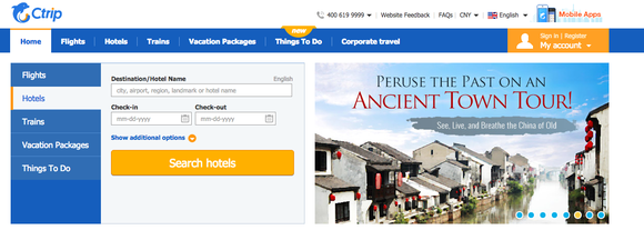 Traveling to China? You'll likely use the company's English-language page. Image: Ctrip.com.