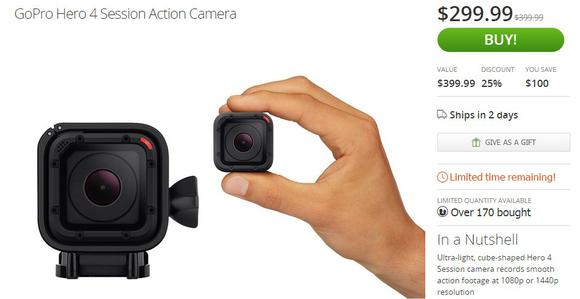 The GoPro brand has appeared on Zulily, but no cameras have been offered yet. On Groupon, however, I found a few more troubling discounts -- the Hero 4 Black, Silver, and Session had all been marked down 16% to 25%. Those discounts, while time-limited, support Murphy's thesis. Moreover, these discounts will likely reappear throughout the holiday season.