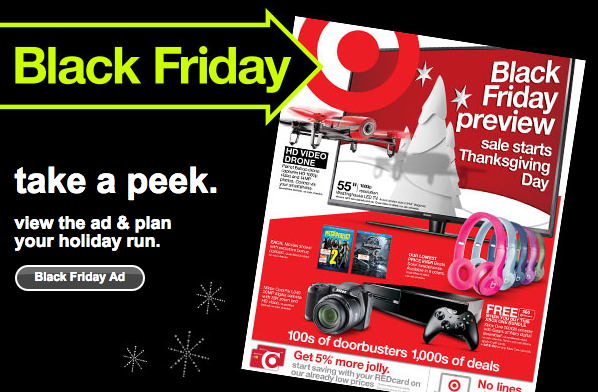 On top of this, Target will give customers a 20% discount to use toward a future purchase when they spend $75 or more on Black Friday. The catch is, they need to use their 20% discount between Dec. 4 and Dec. 13 -- yet another way Target plans to draw repeat traffic both in-store and online. Oh, and then there are the Target gift cards.