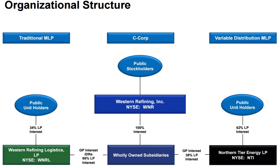 Another reason for a c-Corp like Western Refining to buyout an MLP like Northern Tier Energy is because of the two big tax benefits. First, c-Corps, unlike MLPs aren't pass through entities. Thus by buying out Northern Tier Energy Western refining will be able to keep the tax benefits that normally go to MLP investors.