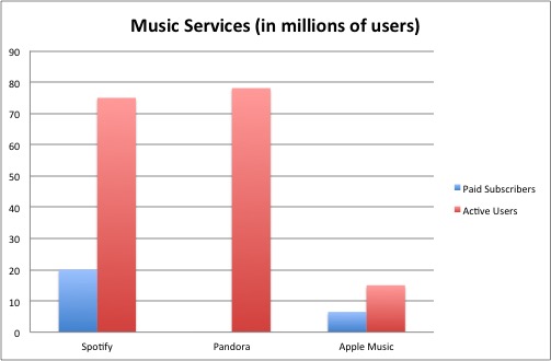 Sources: Pandora IR, Apple, and Spotify's official blog.