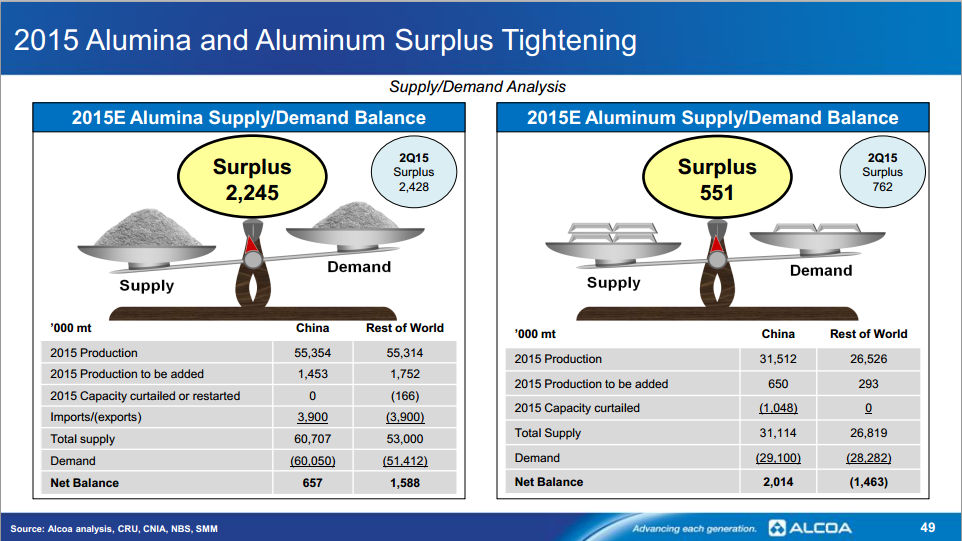 Right now this looks like a great move, at least for the value-add business. That's because aluminum prices, like so many other commodities, have been floundering under the weight of global overcapacity. And, yes, it's China that's a big part of the problem. This means that the upstream business has been facing weak markets while the value-add business has increasingly been able to charge more for its products.