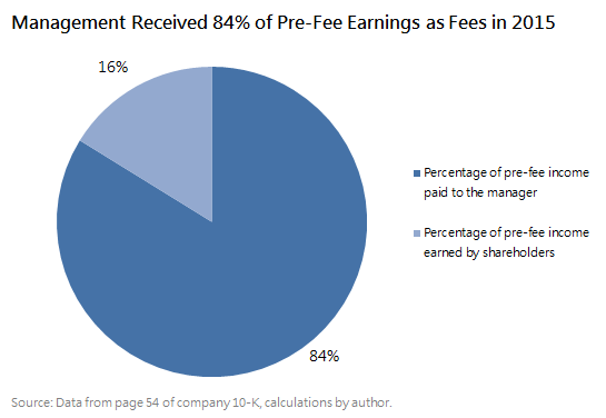 Investors who make their way to page 54 of the company's annual report will see why modifying the fee agreement is key to improving results for shareholders. I've reproduced a portion of the 10-K below.