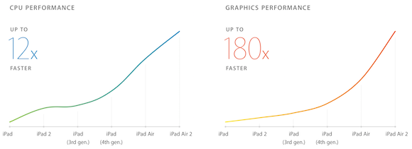 Interestingly, it's not as if the annual performance gains are mitigating like the PC has been seeing for years. Intel (INTC +2.62%) hasn't been all that focused on boosting CPU performance recently; it's been focusing on improving integrated graphics performance and power efficiency. Typically, the rate of upgrades is somewhat commensurate with the performance gains since there's much more reason to upgrade for a 40% jump in performance (such as the A7 to A8X) than a 5% increase (such as Haswell to Broadwell). But Apple's chip performance has been skyrocketing.