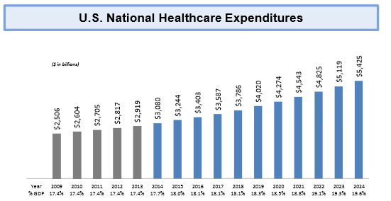 Simply put, it is a near-certainty that demand for healthcare facilities will grow during the coming decades. According to forecasts from the U.S. Census Bureau, national healthcare expenditures will increase by 67% over the next decade.