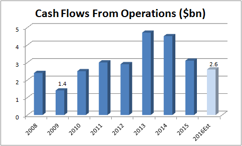 In addition, full-year cash flow from operations came in at $3.1 billion, not bad but still below the $3.2 billion estimate from the third-quarter presentations. Turning to 2016 guidance: