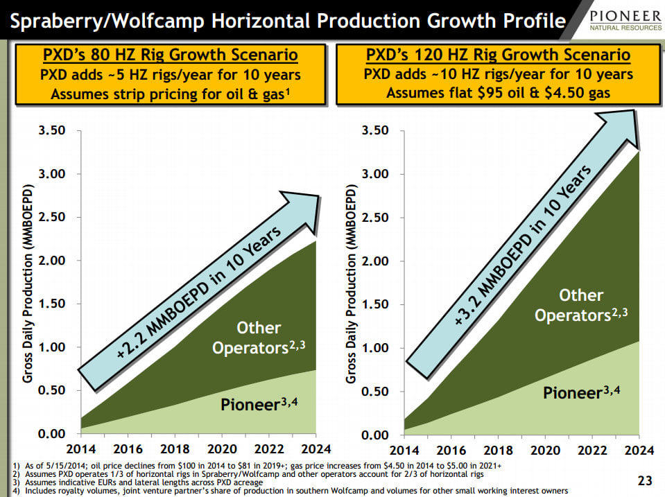 Penn West, of course, wasn't alone in not seeing the downturn coming. Permian Basin driller Pioneer Natural Resources (PXD +0.00%) was building a 10-year plan to develop its gigantic resources base. It was building its plan based on two scenarios: