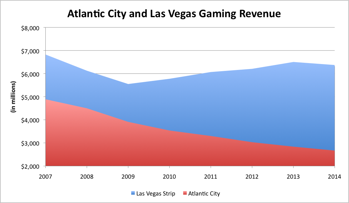Data source: Nevada Gaming Control Board and New Jersey Division of Gaming Enforcement. Chart by author.