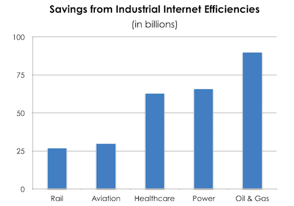 According to GE, the Industrial Internet could save each industry quote a lot of money over the next 15 years, if just 1% efficiencies were introduced:
