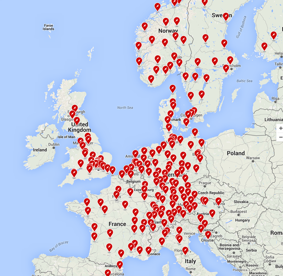 Tesla Supercharger network in Europe. Image source: Tesla Motors.