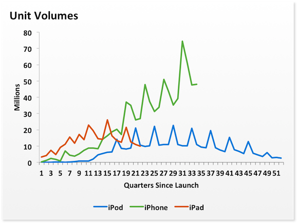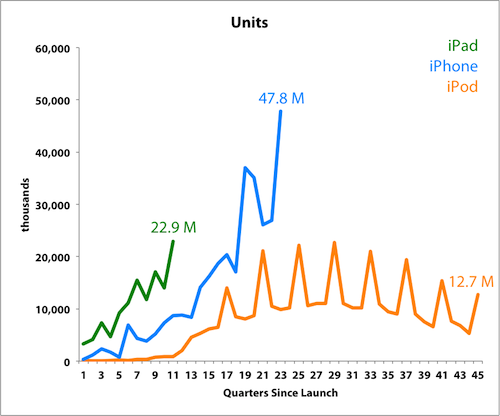 And I looked at how iPad unit sales had taken off faster than any product before it.