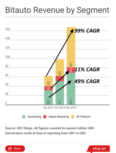 - Digital Marketing: Bitauto has a division devoted to helping car dealers build their own websites, and execute large advertising campaigns -- both on and off Bitauto's platform.