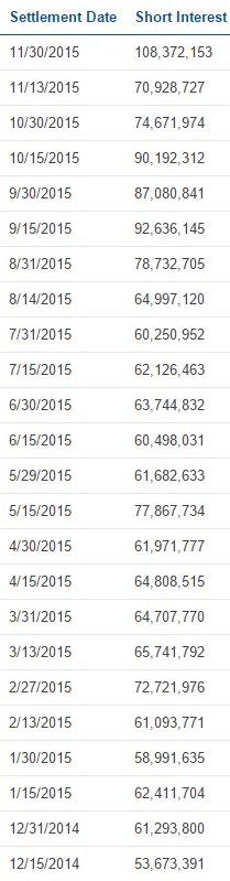 This bit of news didn't really manifest itself in an increased short interest by the Nov. 13 settlement date, but by the Nov. 30 settlement date, short interest had grown by more than 30 million shares.