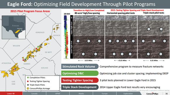 Companies like EOG Resources and ConocoPhillips remain excited by the Eagle Ford shale because they are figuring out the key to drilling better wells. That's largely the result of continual testing of the play, with EOG Resources now discovering where to target wells into the best spots of the play. That is leading to an improvement in its drilling returns, which is a real key to success in the current low oil price environment.