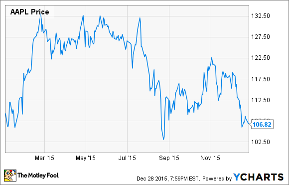 The stock market was not kind to Apple at the end of the year. Source: YCharts.com.