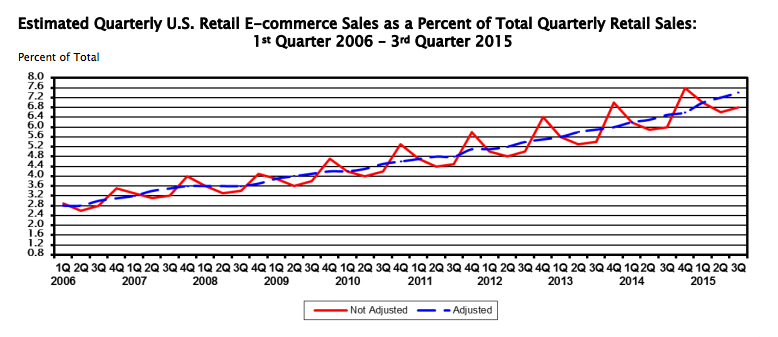 Investors living in developed markets, especially the U.S., tend to think of e-commerce as a well-defined category today and rightfully so. After all, Amazon itself is over 20 years old. However, e-commerce as a form of retail is in its relative infancy. I constantly use this chart in making the case for Amazon's long-term growth potential because it so rarely gets discussed, but few investors today probably realize that total e-commerce sales represent only 7.4% of total U.S. retail sales per Commerce Department data.