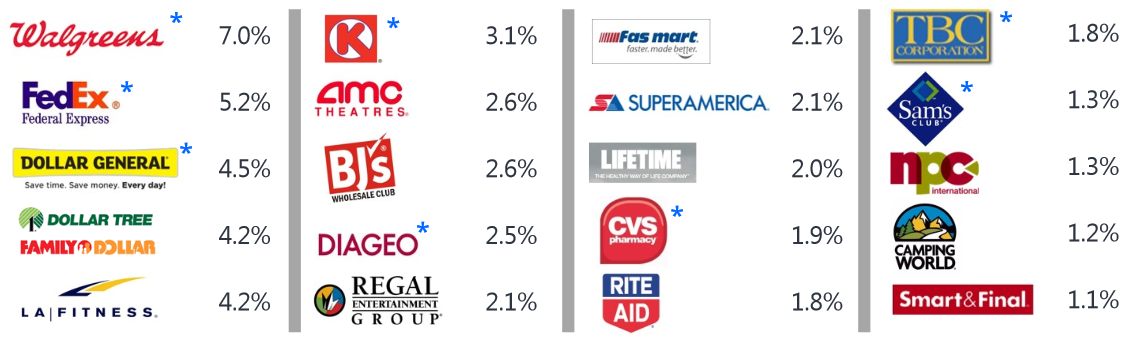 A glance at the company's top tenants shows how the majority can be grouped in to one or more of these categories.