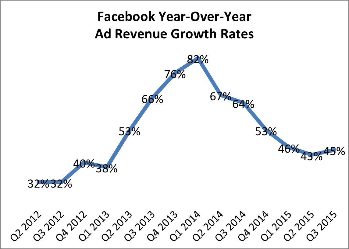 Rapidly decelerating revenue growth rates have a tendency to spook investors. Consider Twitter's (TWTR +0.00%) revenue growth; while higher than Facebook's, a large deceleration from 97% year-over-year growth in the fourth quarter of 2014 to 58% year-over-year growth in the third quarter of 2015 has investors wondering if this steep deceleration in growth rates will persist.