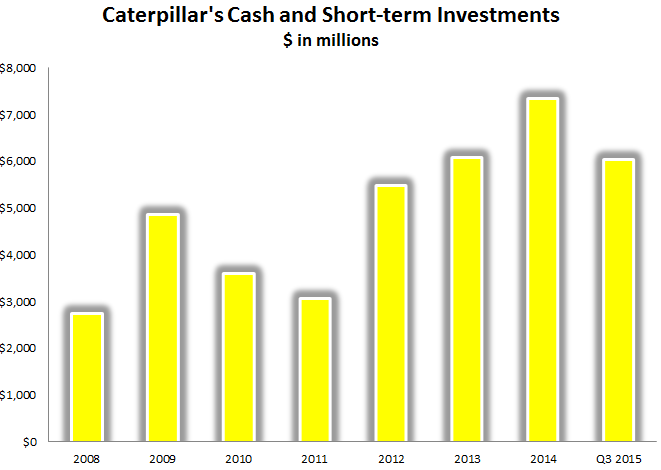 Despite the doom and gloom for Caterpillar's top line, investors can take comfort that the balance sheet is in better shape than the last downturn amid the past recession, its cash pile remains elevated, and management just announced that its dividend is safe from being slashed.
