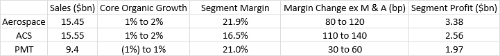 Source: Honeywell International presentations. All figures are mid-point of company guidance unless stated. BP is basis points, where 100BP equals 1%.