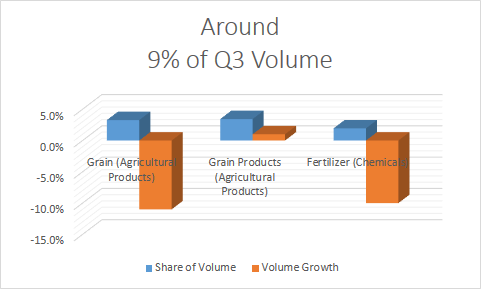Moving on to the agricultural theme, you can see the declines in grain and fertilizer volumes, but grain-products growth isn't as tied to grain pricing as much as the other two activities.