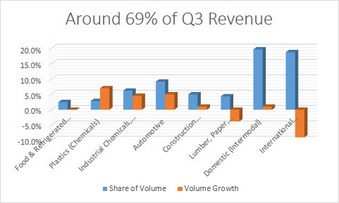 Moving on to the rest of Union Pacific's business, it's interesting that, including grain products, growth from end markets responsible for 50% of Union Pacific's revenue was in positive territory in the third quarter.