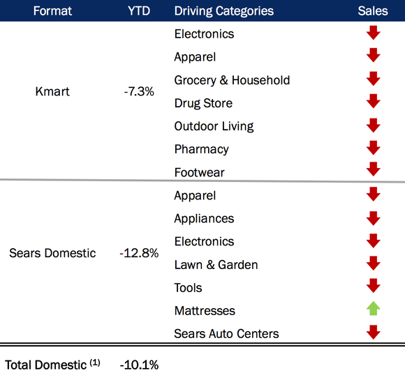 Why are Sears' comps suffering so severely? In a word: competition. Sears Holdings is a prime example of a traditional brick-and-mortar retailer that's getting annihilated by the merciless growth of e-commerce. Amazon (AMZN +9.77%) is a particularly dangerous threat. The online juggernaut offers a value proposition -- including an unmatched selection of goods, low prices, convenient shopping experience, inexpensive and even free shipping, excellent customer service, and a trusted brand -- that Sears simply can't match.
