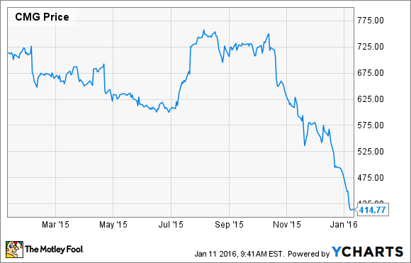 Chipotle issued a statement in early January saying that "sales at restaurants open at least a year slid 30% in December and fell 14.6% during the fourth quarter," USA Today reported. That has been pretty lousy for its stock price which has fallen more than a third in the last 12 months.
