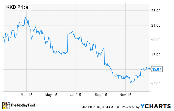 Starbucks had a stellar year, opening 2015 at $82.13 and closing it -- after a 2-for-1 stock split in April -- at $60.03, according to S&P Capital IQ data. Effectively, that makes the yearly closing price the equivalent of $120.06, a change of 48.16%. Panera also had a strong 2015 opening at $175.03 and closing at $194.78, according to S&P Capital IQ, an 11.28% positive change in stock price. Krispy Kreme, however, went in the other direction, opening the year at $19.78 and closing it down 23% at $15.07, according to S&P Capital IQ.