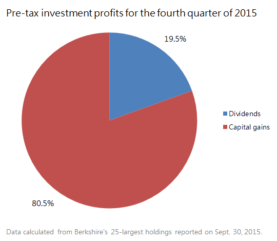 In the fourth quarter of 2015 alone, Berkshire's 25-largest stock investments rose in value by $4.4 billion thanks to rising stock prices and dividends.