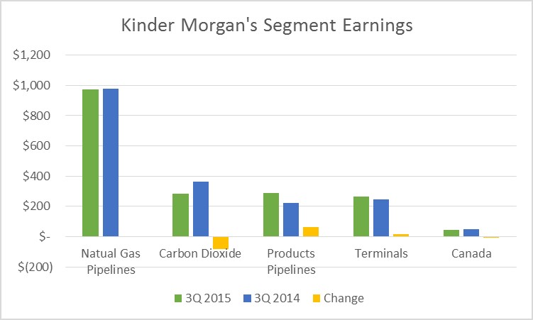 While Kinder Morgan's key natural gas pipeline segment's earnings were roughly flat, its carbon dioxide and Canada segments were noticeably weaker due to weak oil prices and a strong U.S. dollar. That weakness was a concern because the company's financials were already tight.