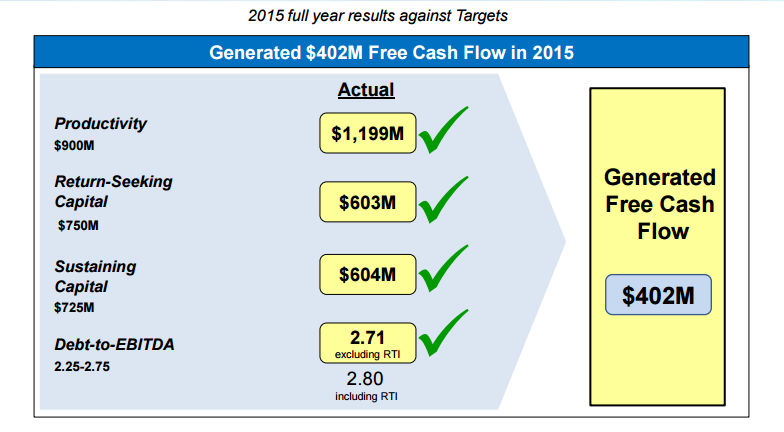 Alcoa is doing a good job of meeting the goals it sets out. Source: Alcoa