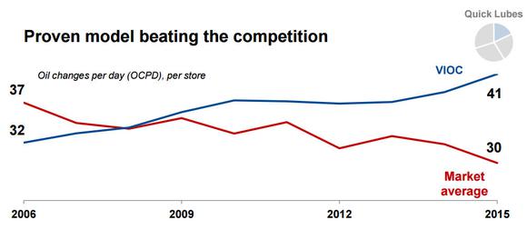 Valvoline has been changing more oil than its peers. Source: Ashland.