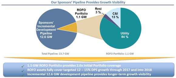 Here you can see the immense growth potential that 8Point3 Energy Partners processes thanks to its sponsorship by First Solar and SunPower. Note that management's distribution growth guidance is based purely on the yieldco's backlog of right-of-first-offer projects, which represents just 8.7% of First Solar and SunPower's total solar development pipeline.