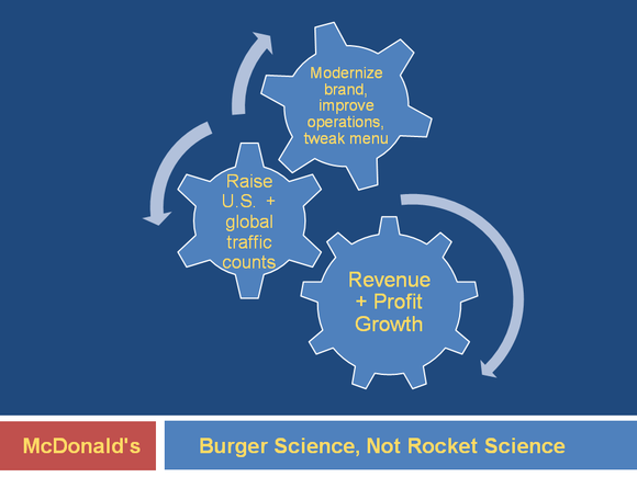 But to convince shareholders that revenue growth can be sustained, McDonald's will have to complete, in the least, the following three broad strategic tasks that management embarked on last year. At this point, McDonald's fixes aren't rocket science -- they're more burger science. That is to say, this part of the plan isn't about analysis, brainstorming, and problem solving -- it's about execution.