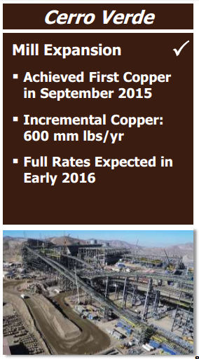 And that's where Cerro Verde comes in. This is Freeport's giant mine in Peru. The company has been working on and off to expand this mine since 2008, after it was added to the fold in the Phelps Dodge acquisition. It's been a long time coming, and the company has spent billions on the project; the Cerro Verde expansion is scheduled to come on line this year.