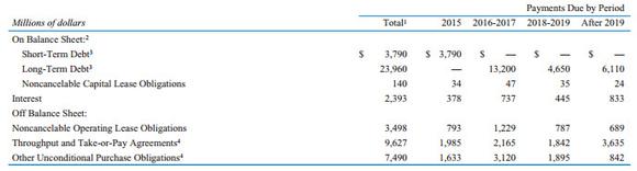 Long-term debt has more than doubled in the last three years. As you can imagine, this increase will put a further strain on cash flow that will need to be used for interest payments to pay off the debt burden of $1.1 billion by 2019. Long-term debt coming due by 2019 stands at about $18 billion, but they are expected to refinance those debt burdens.